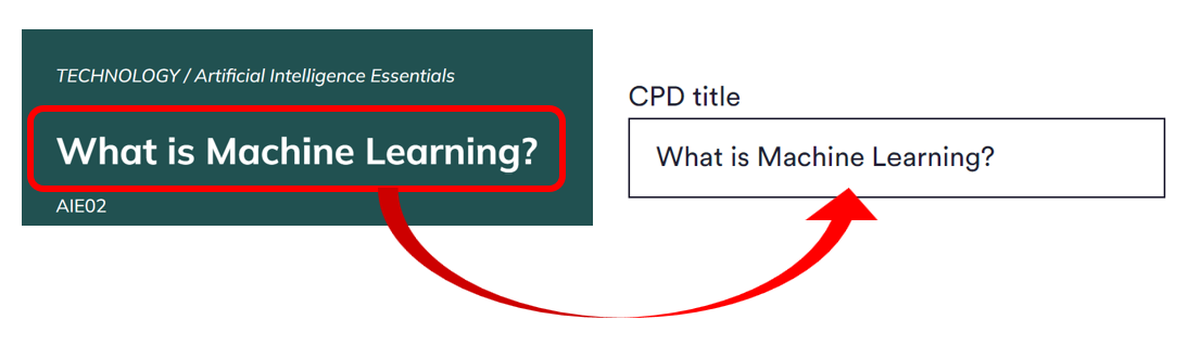 - The CPD title will be same as the course title, which What is Machine Learning?