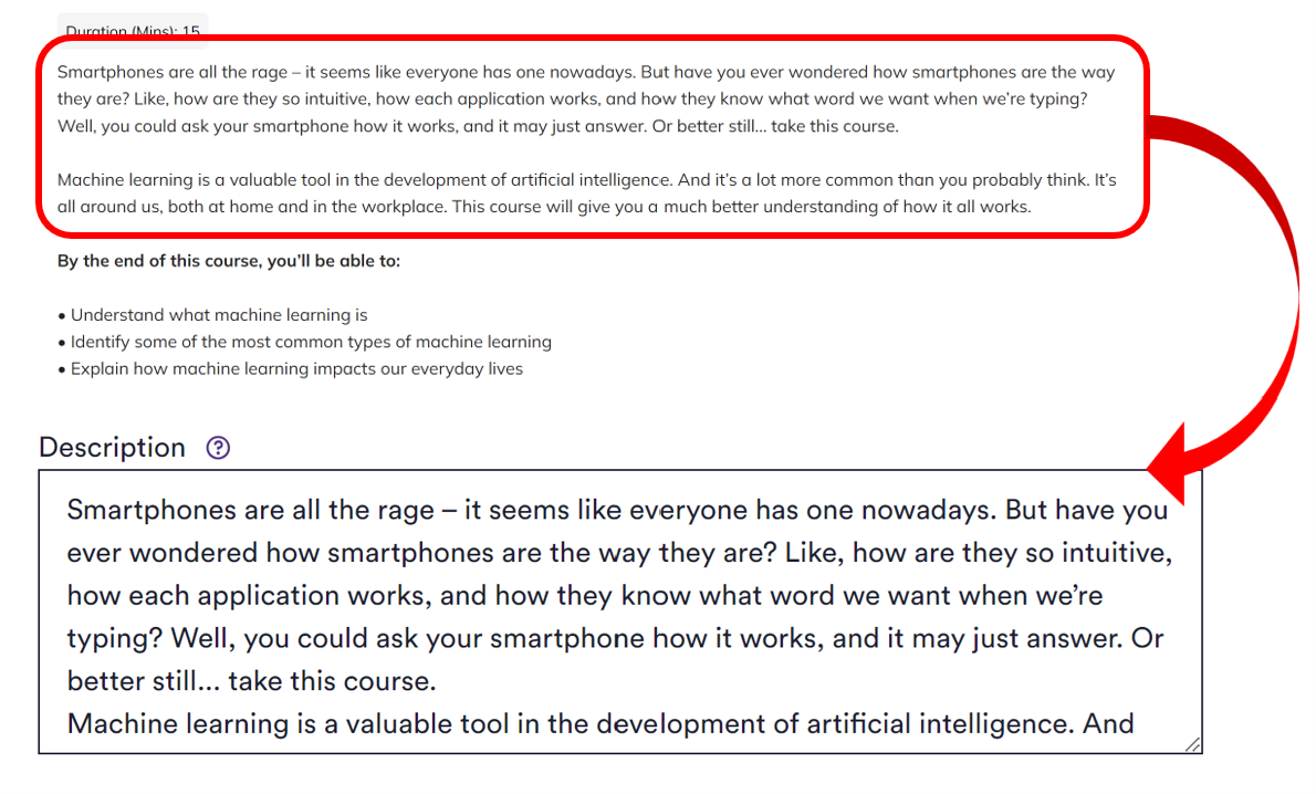 - Description can copy from our course description before “By the end of this course, you’ll be able to:”